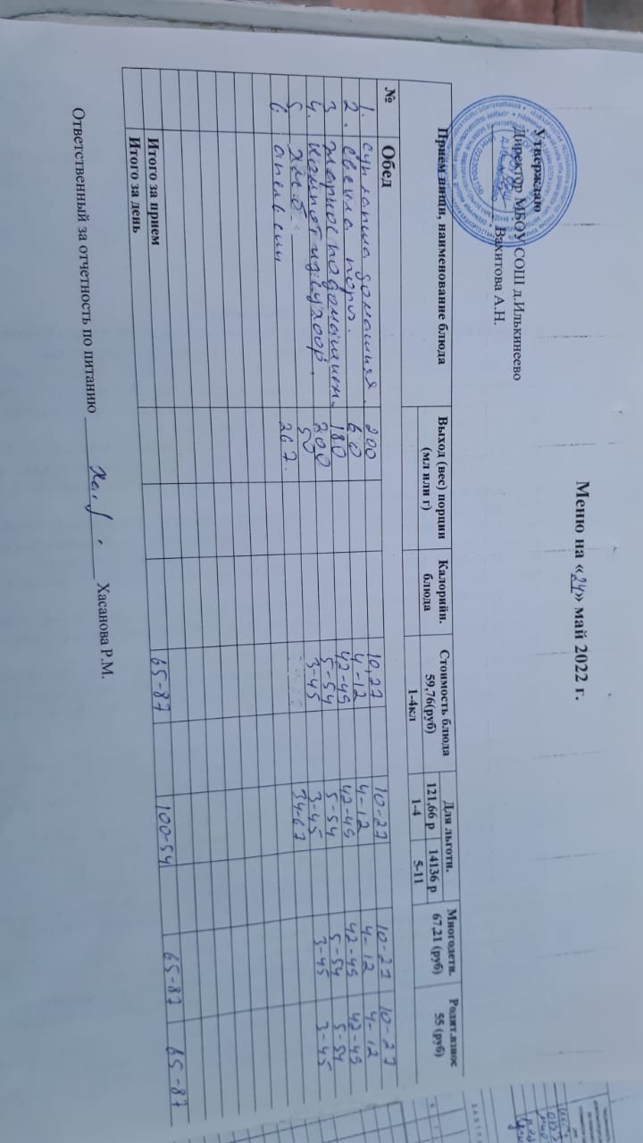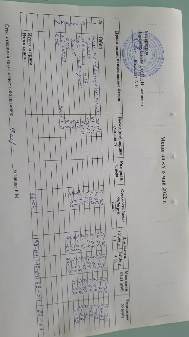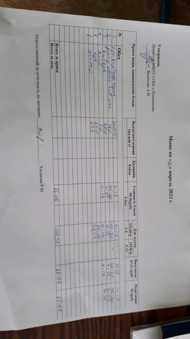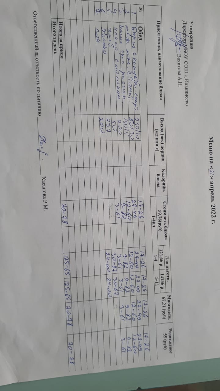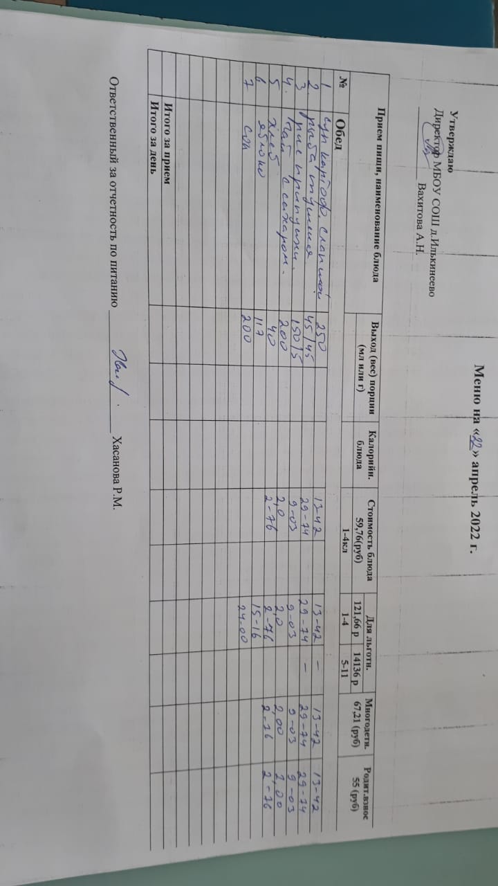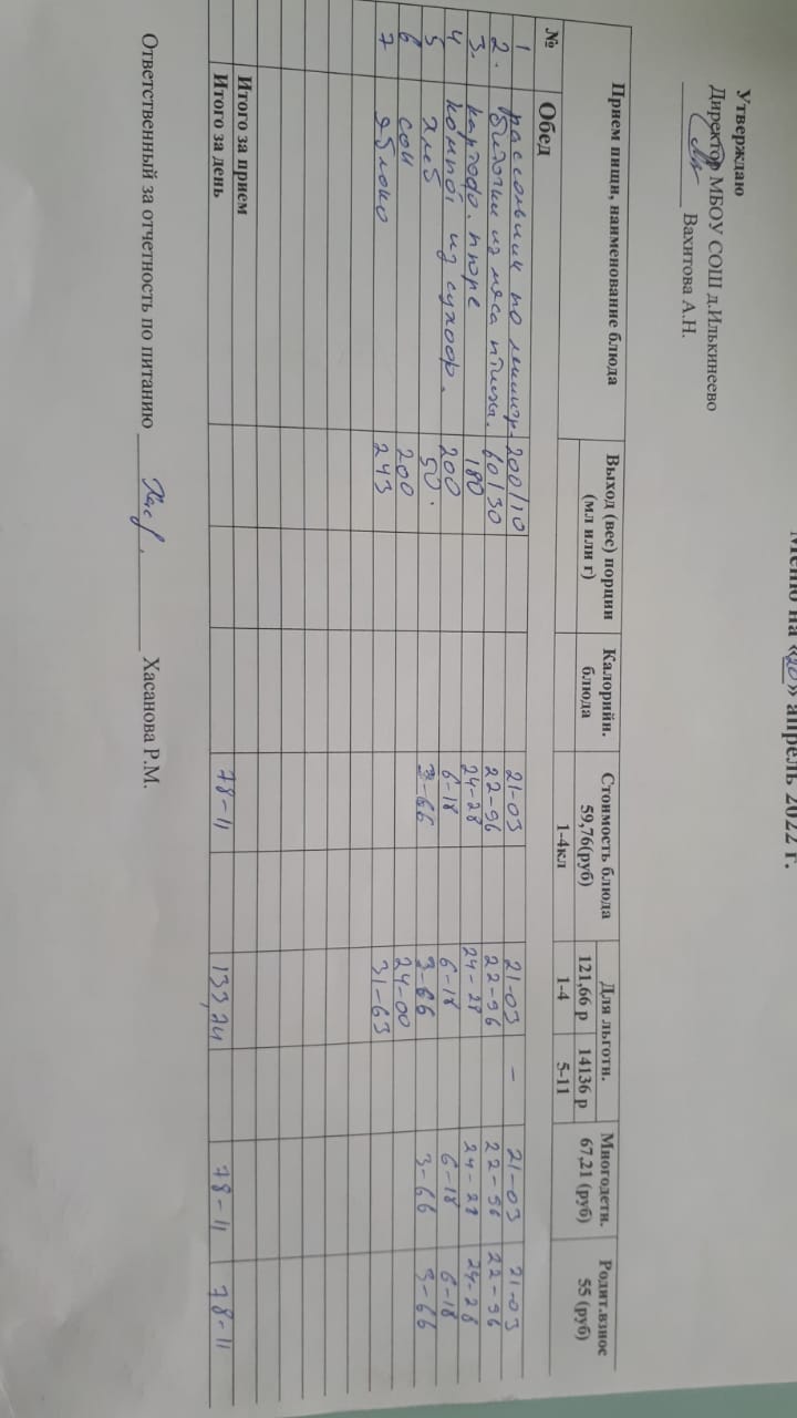 Меню 1-4 классов