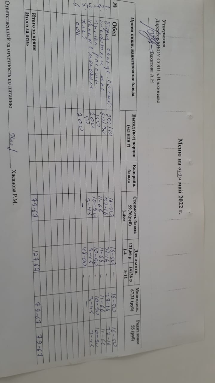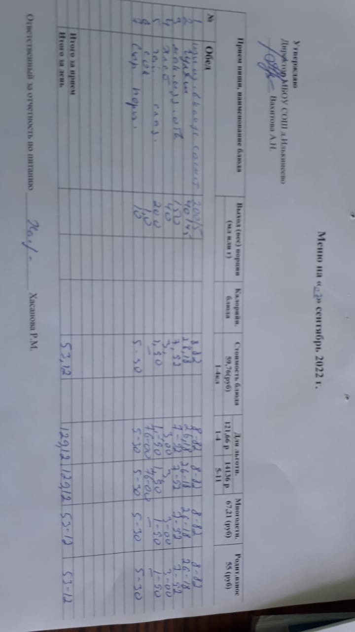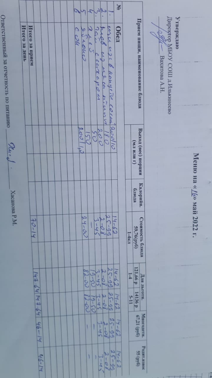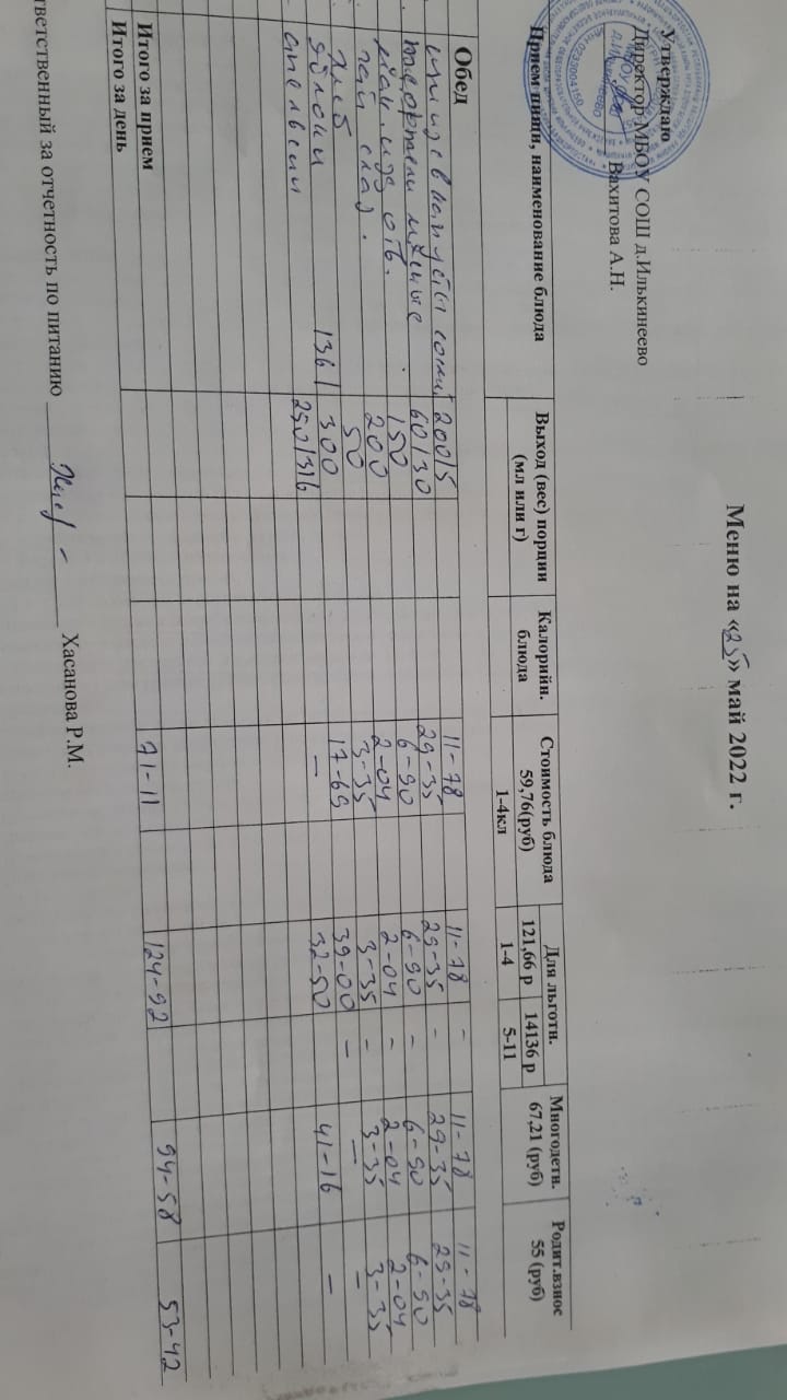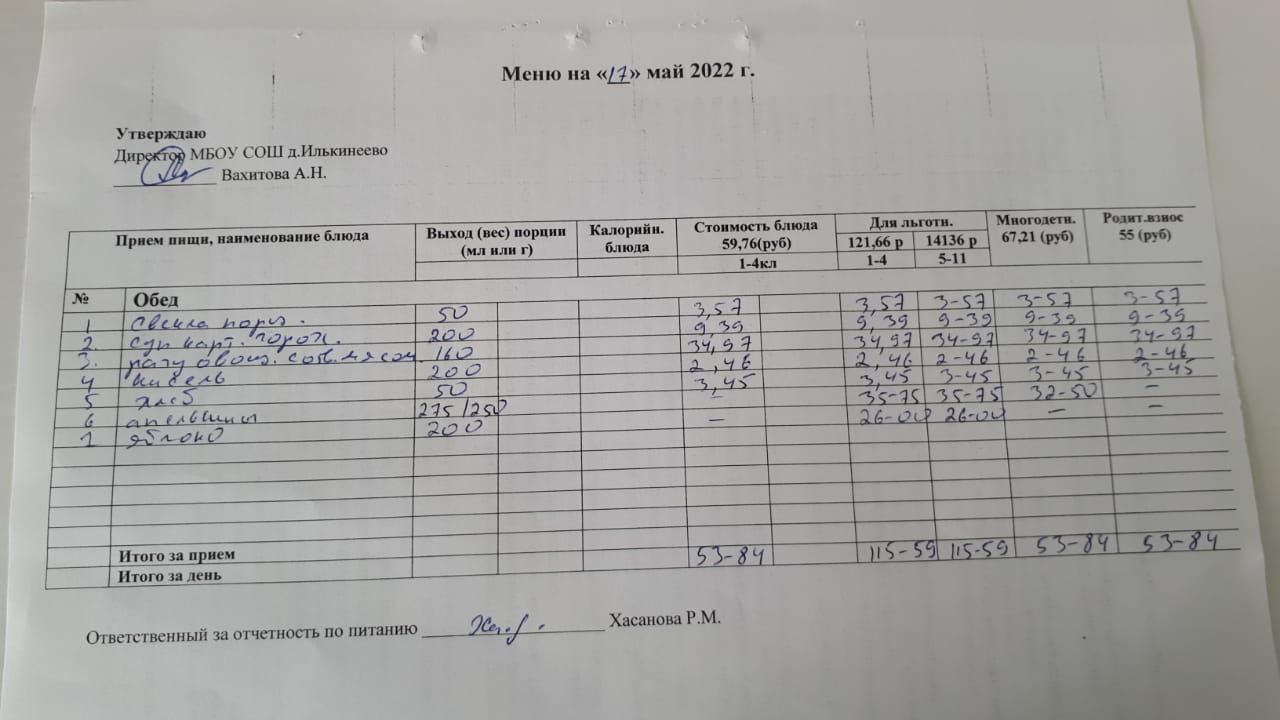 Меню 1-4 классов