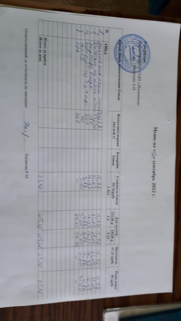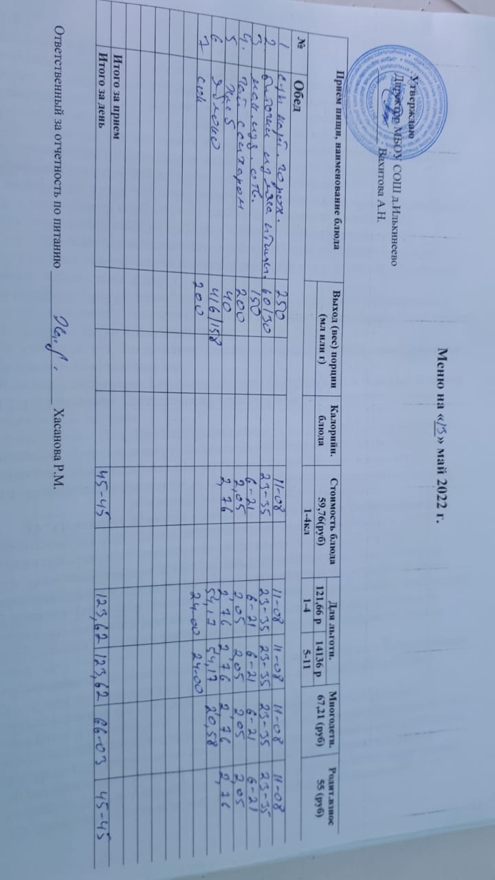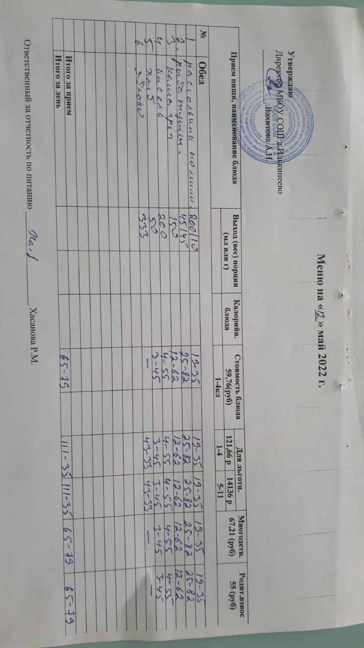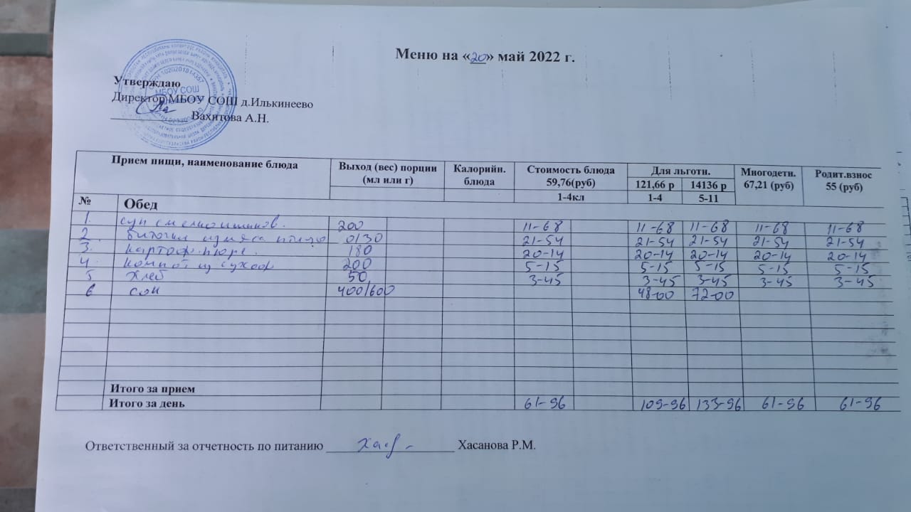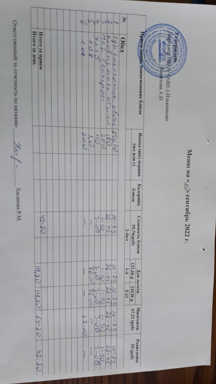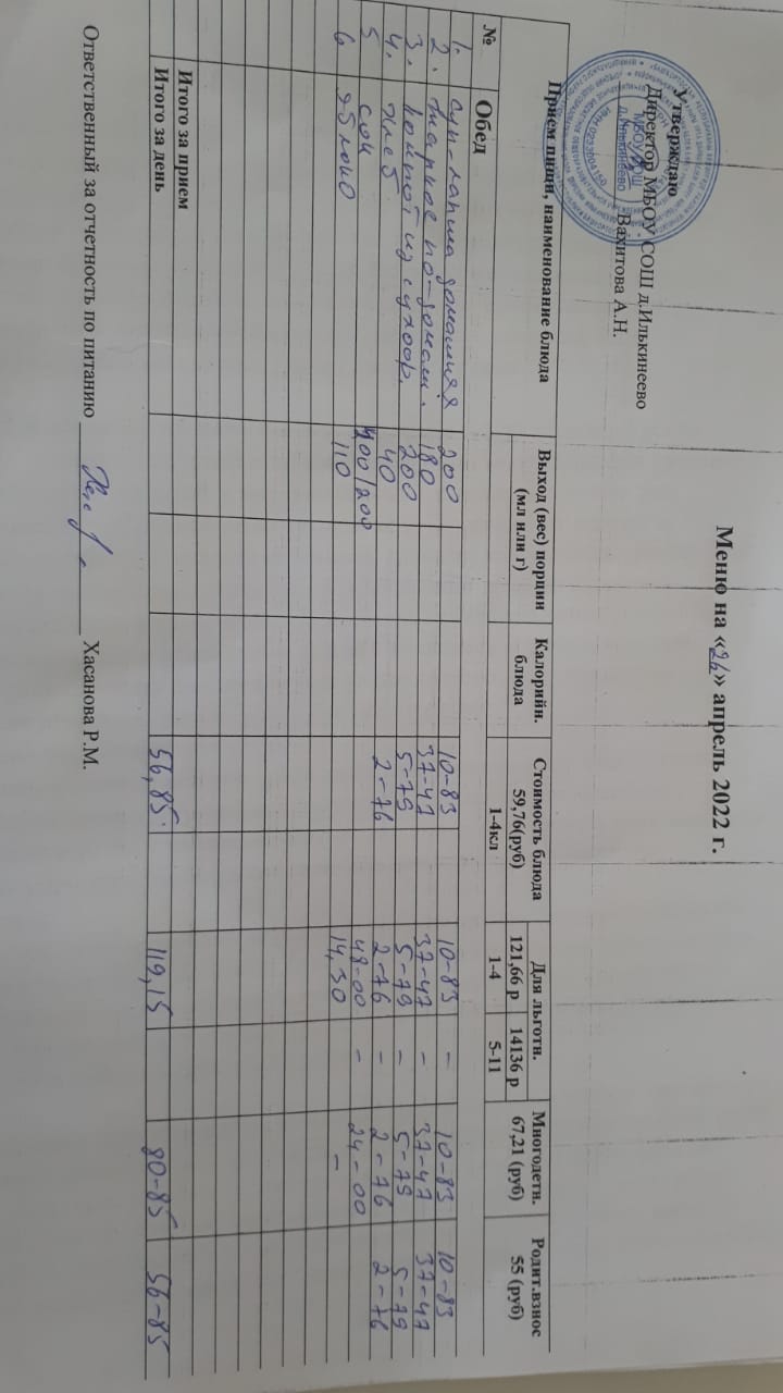 Меню 1-4 классов