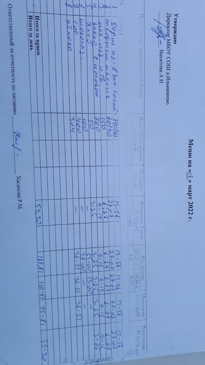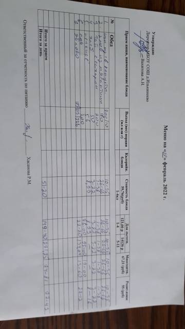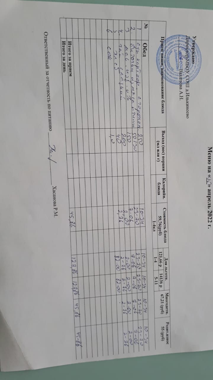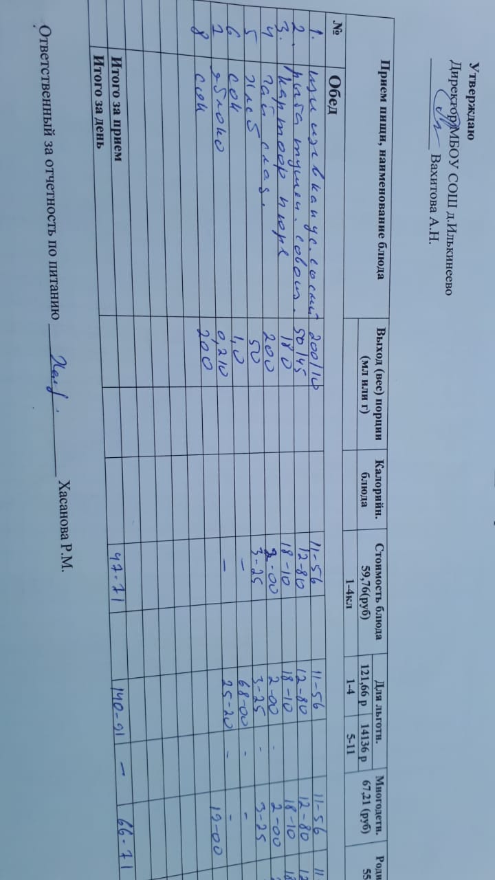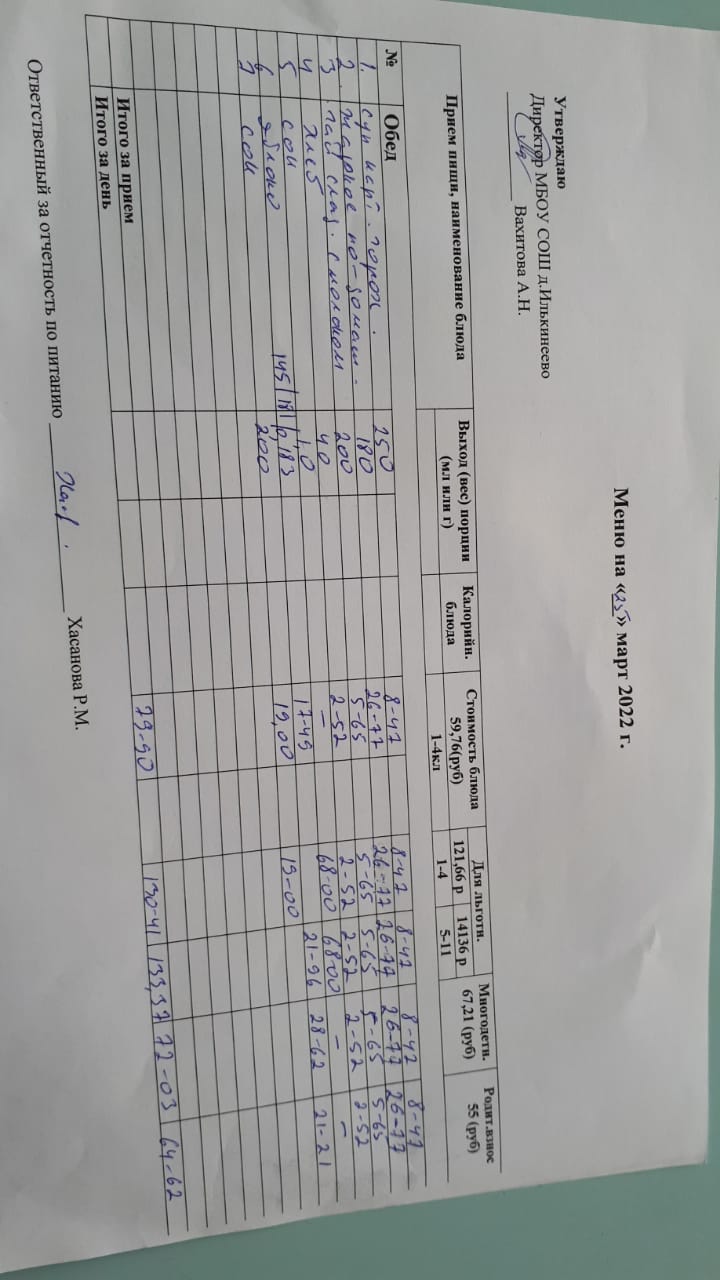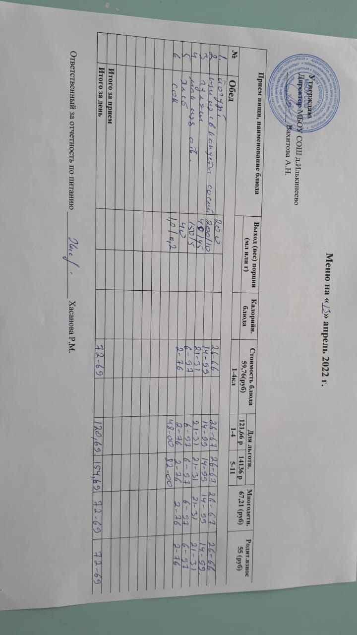 Меню 1-4 классов