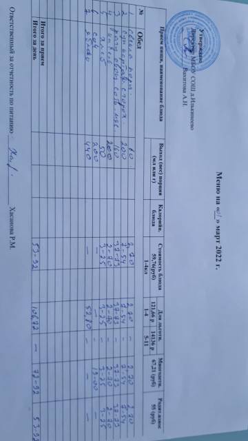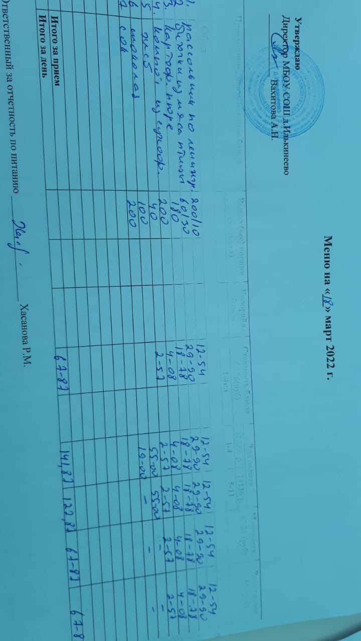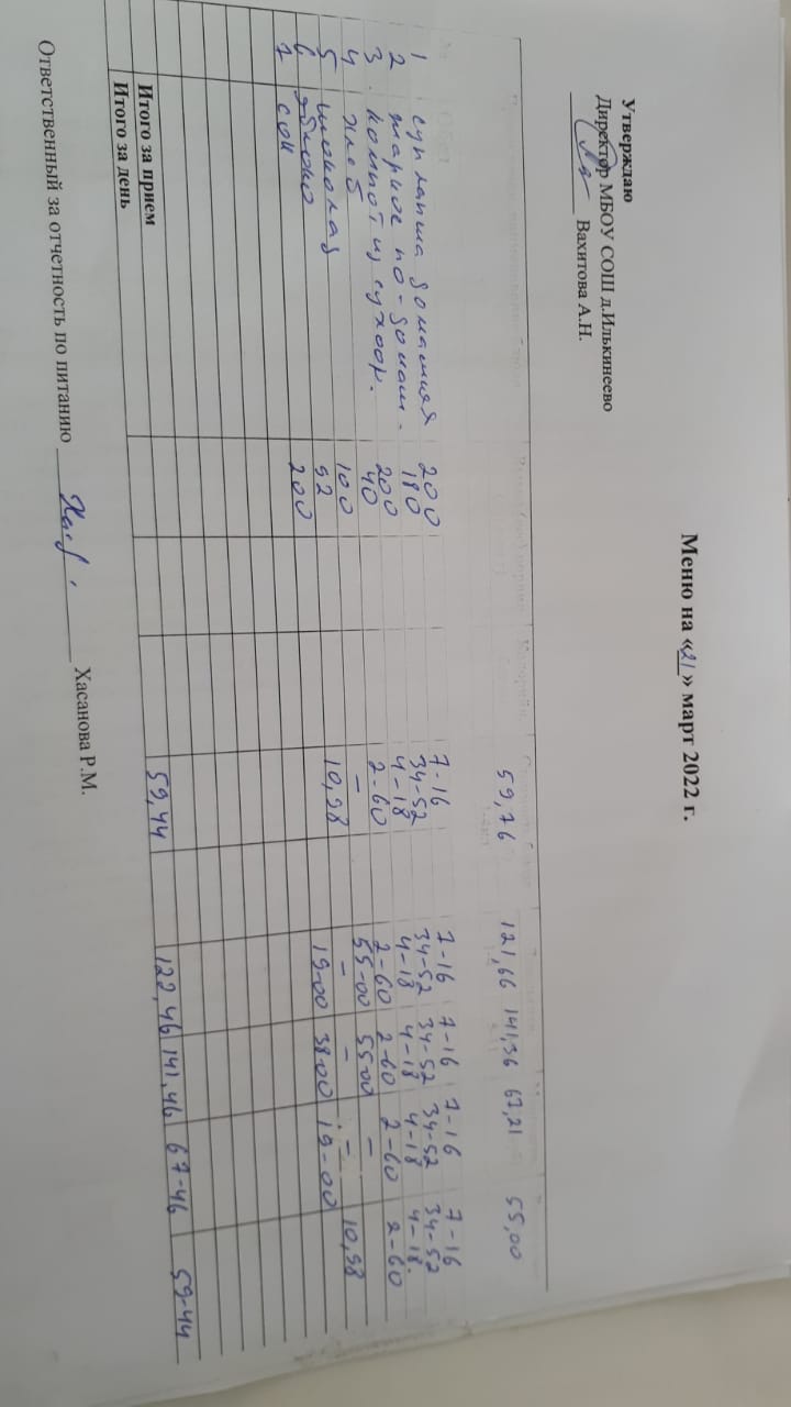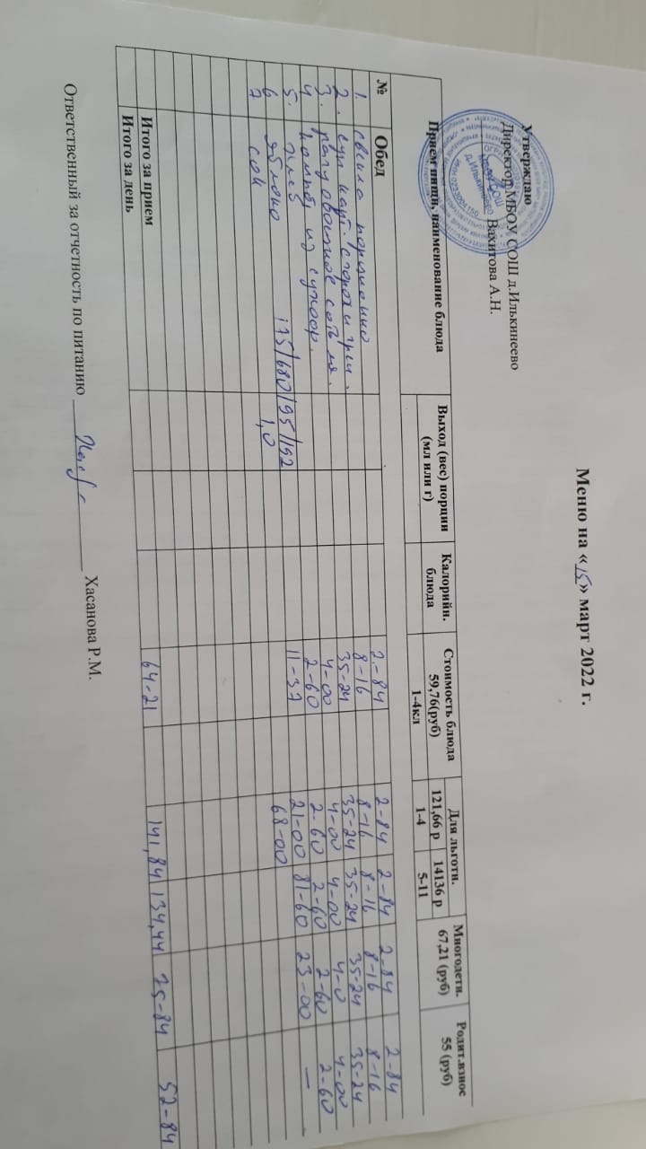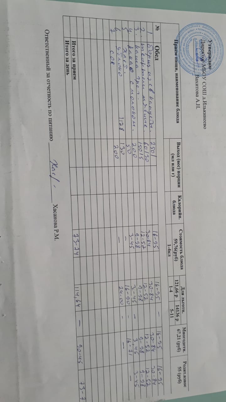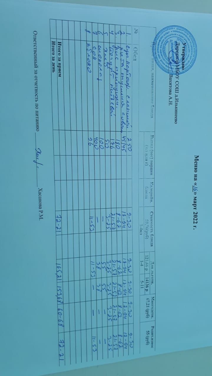 Меню 1-4 классов