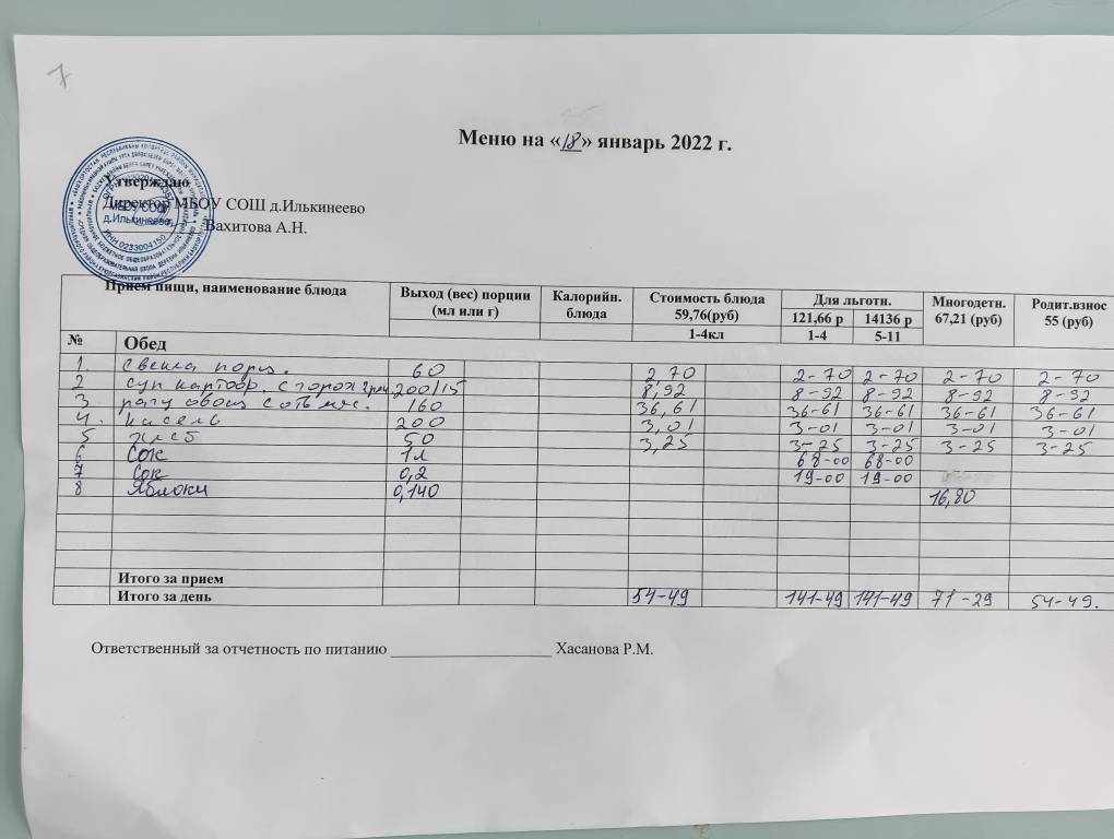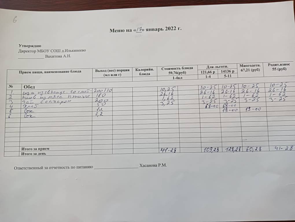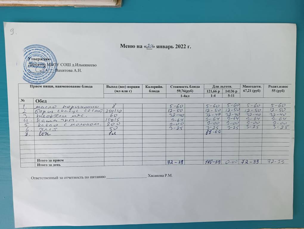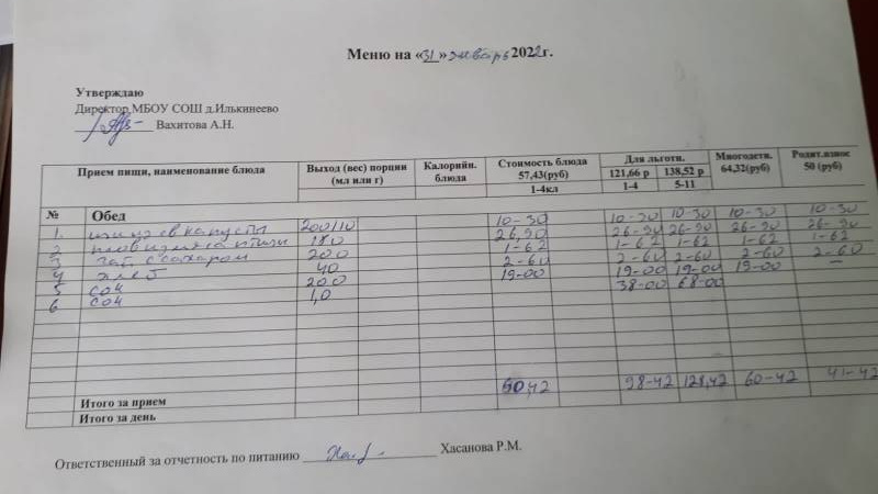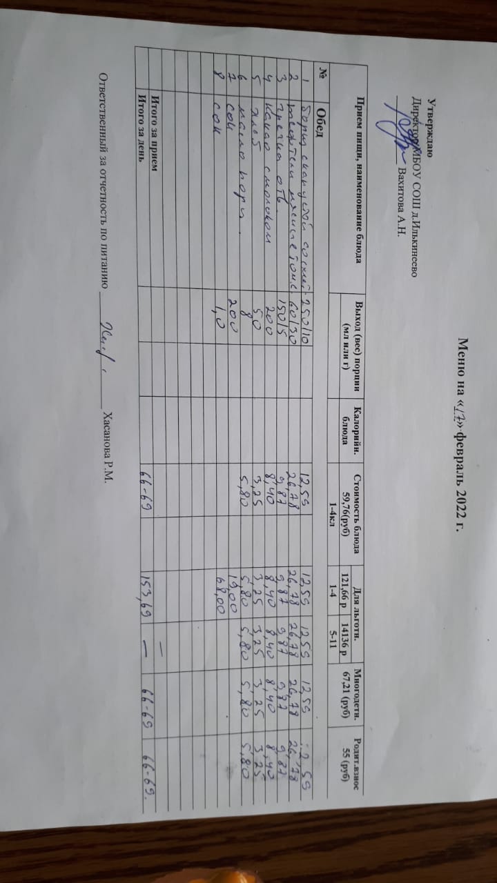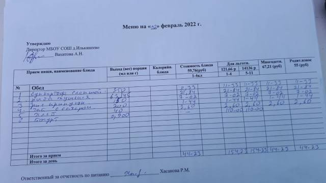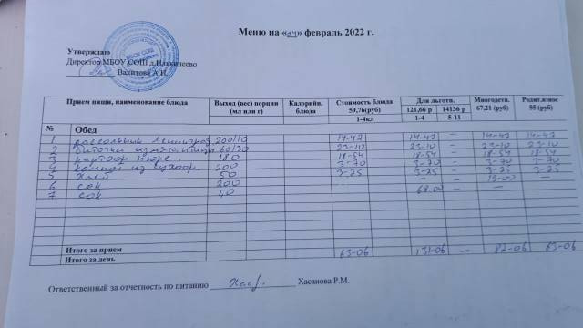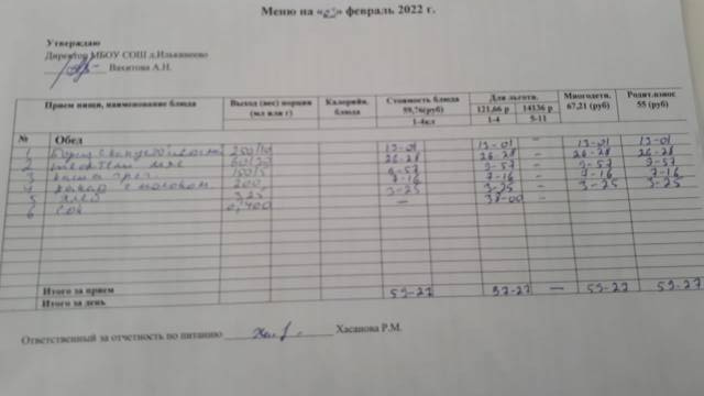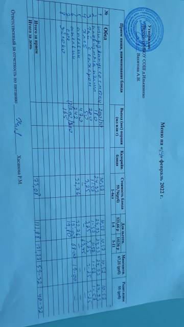 Стоимость школьного питания