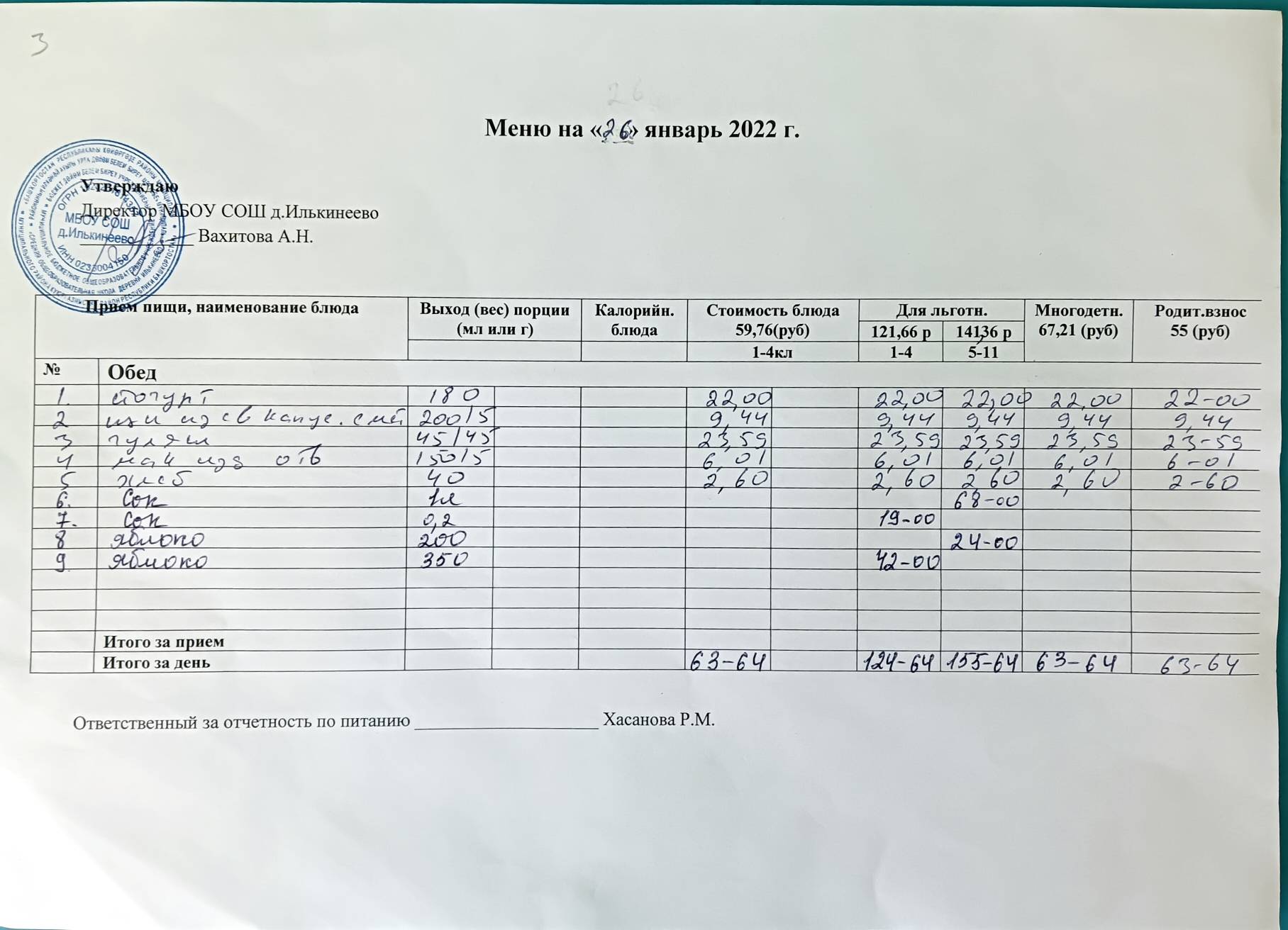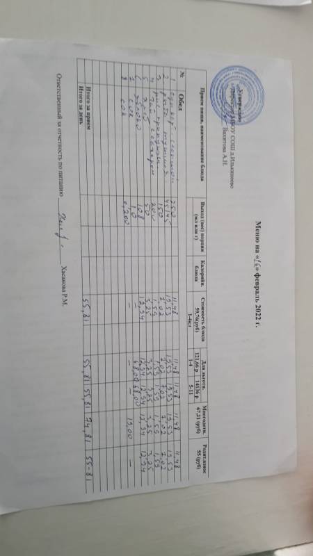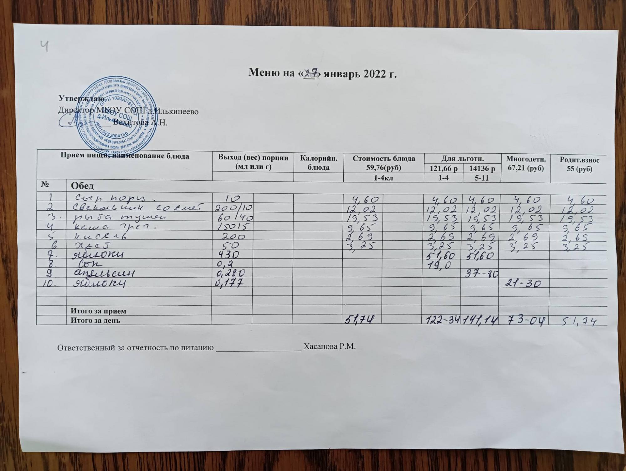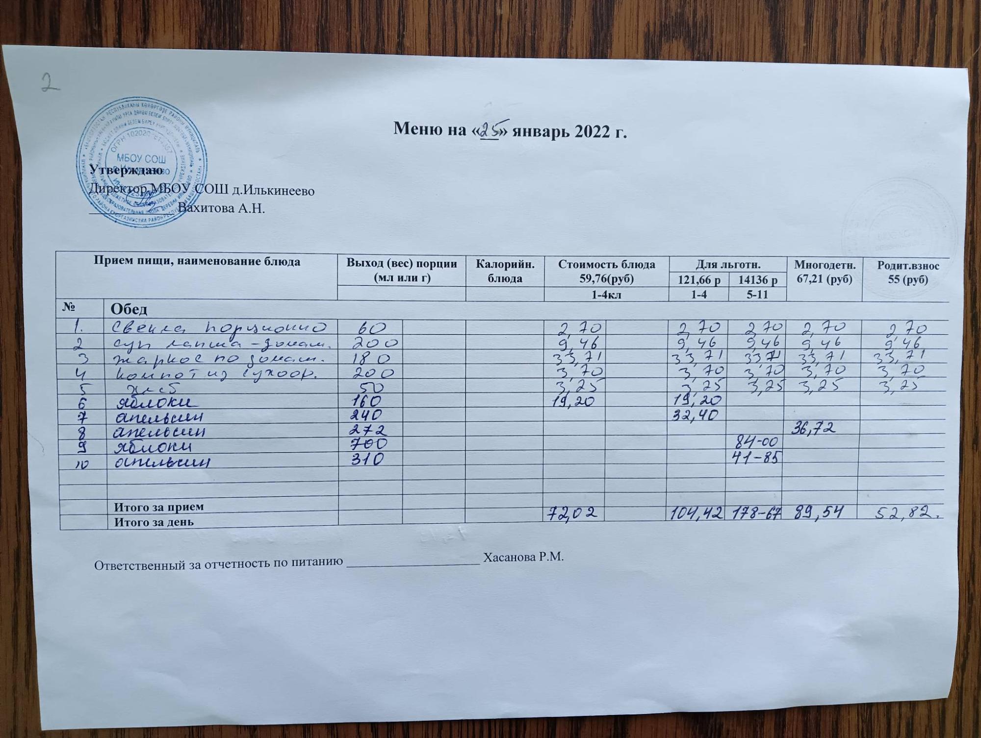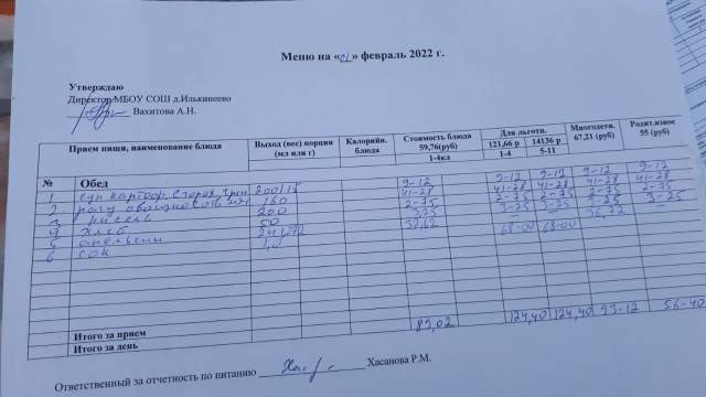 Стоимость школьного питания