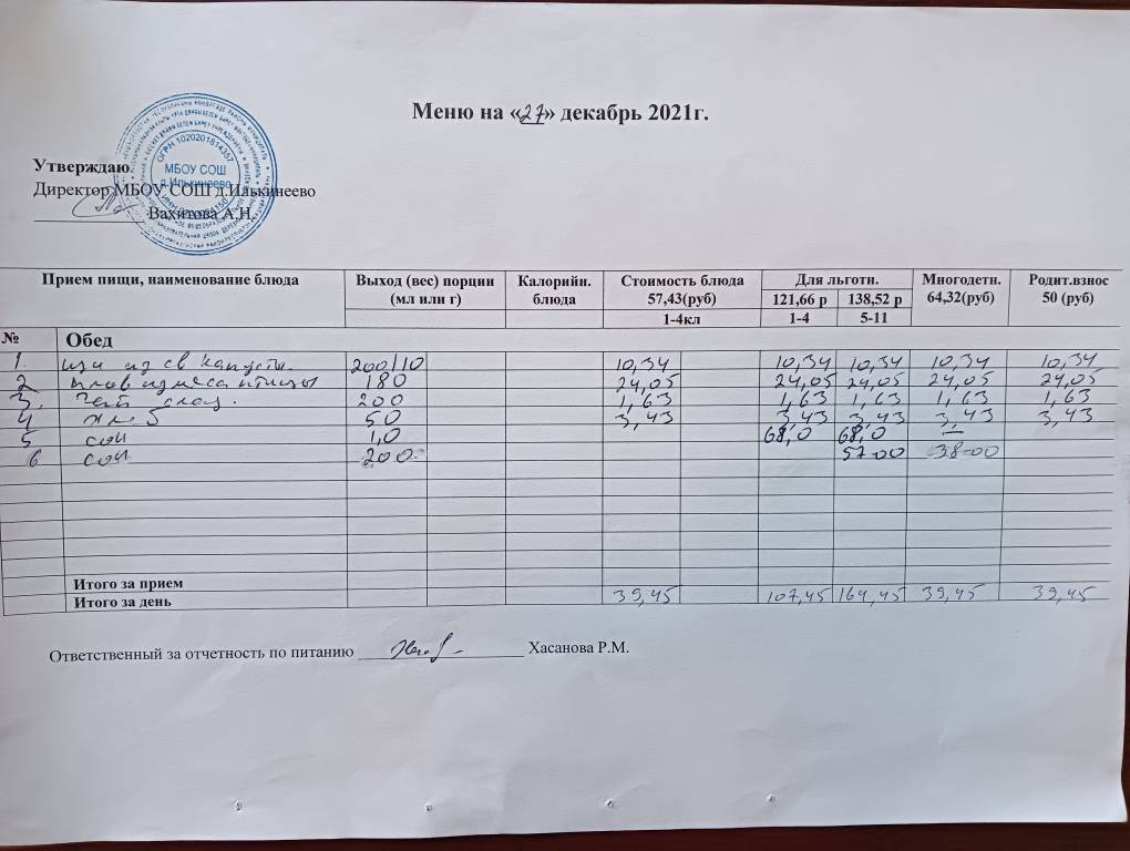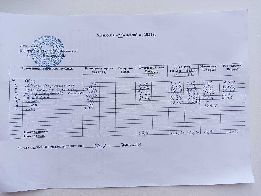 Меню на 28 декабря