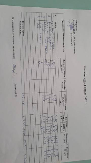 Меню на 15 февраля